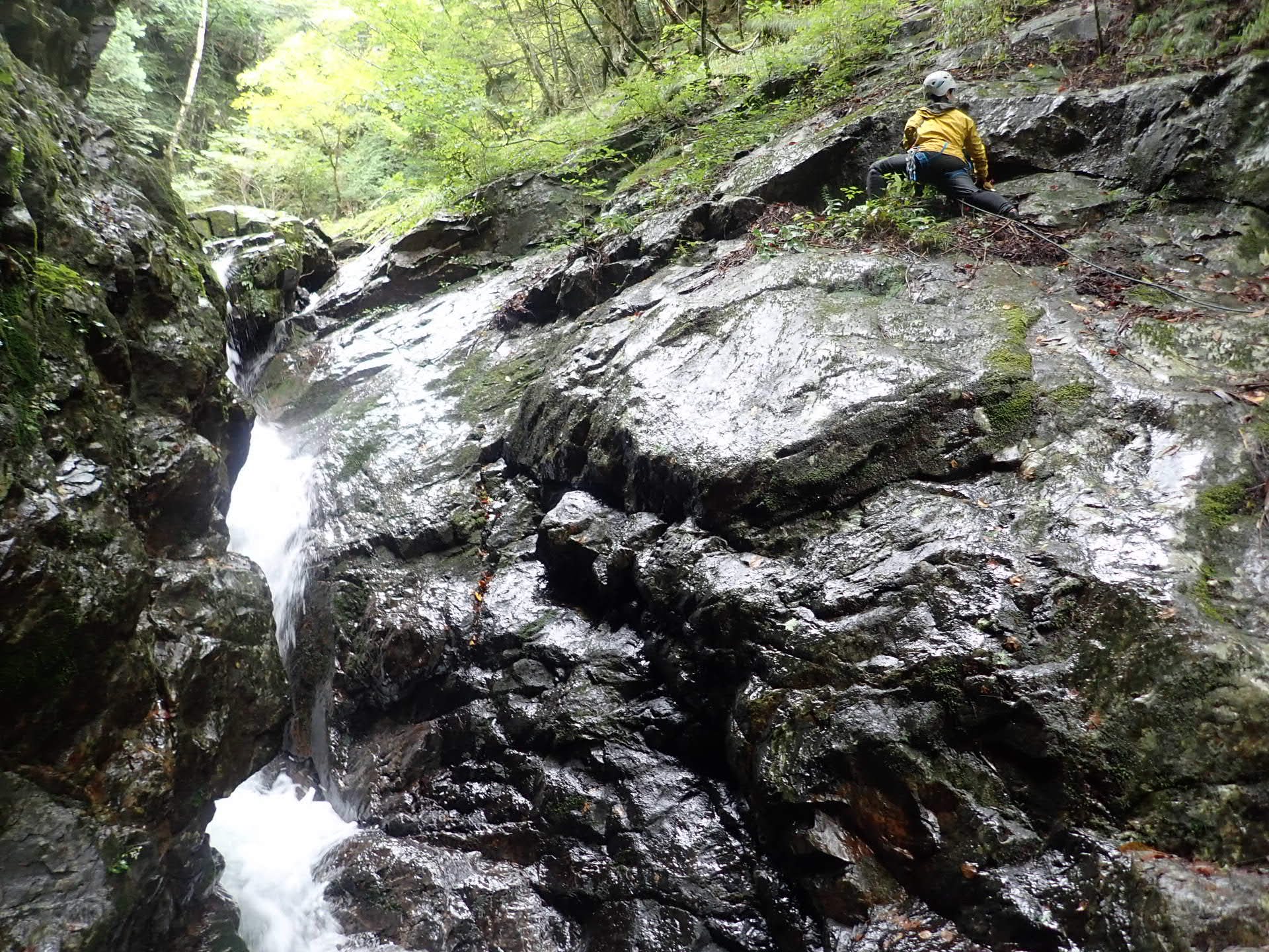 8m幅広 右から登る。 このくらいの似たような滝が続きます。どれも慎重にフリーで登った