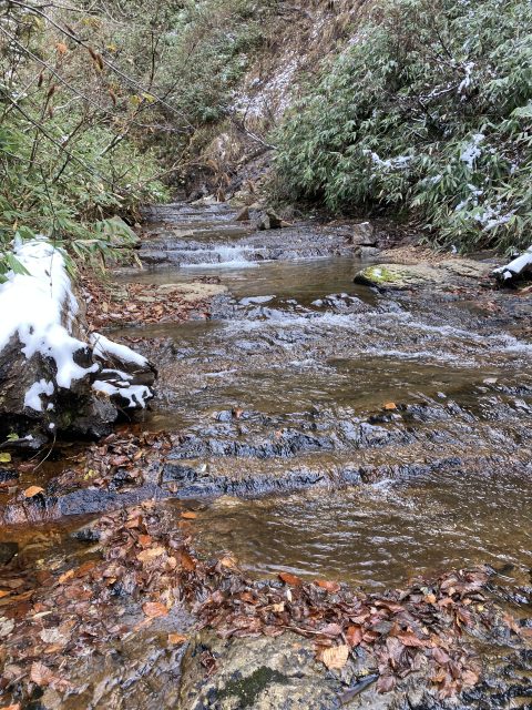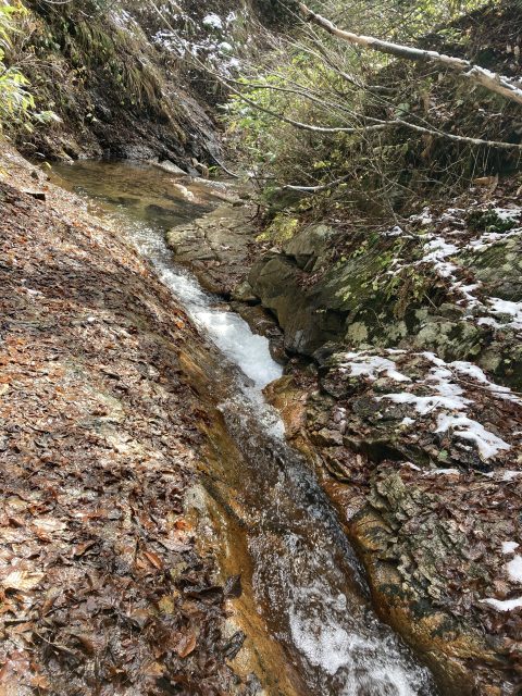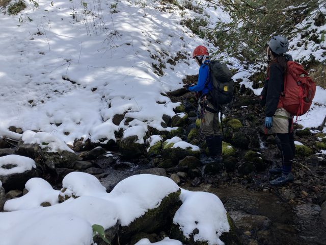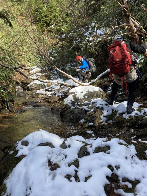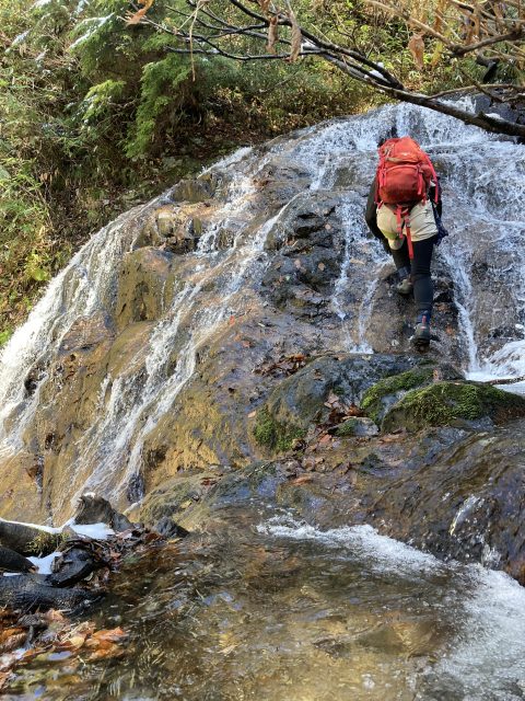 極力足元を濡らさぬよう沢沿いを歩いていきます。
