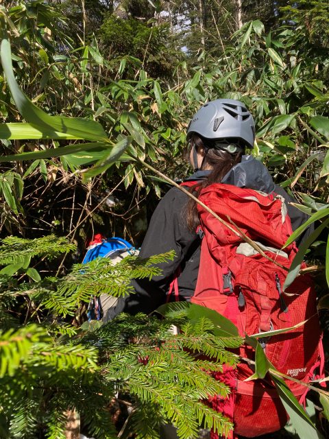 2m滝は左を巻きます。生い茂っている笹を掴みながら登りました。