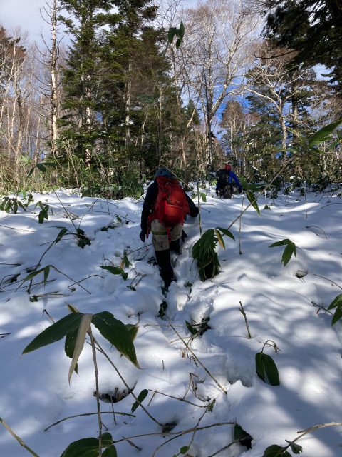 雪が積もって歩きやすくなっている半面、道が不明瞭で時々方向を軌道修正しながらの下山でした。