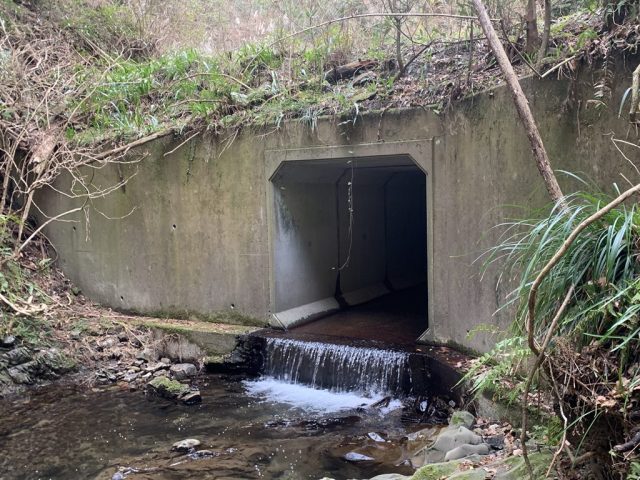 林道の下、ボックスカルバートを潜りぬける