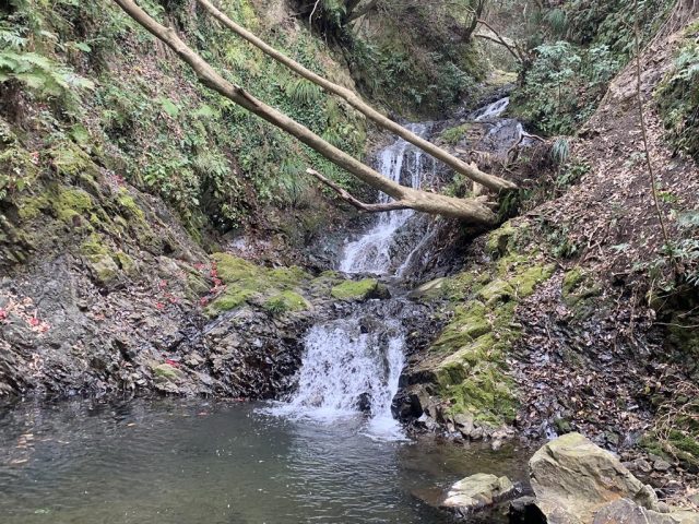 しばらく行くと1mほどの落ち込み。続いて3mほどの滝が登場。3m滝は右側に倒木が掛かっているので、倒木沿いに登る。