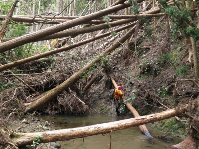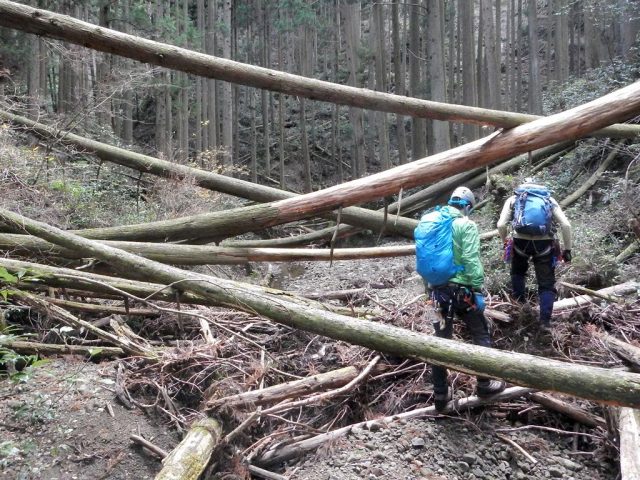 セーナ沢の倒木帯を下る