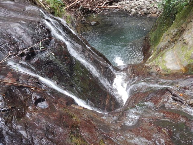 続いて、滝とも言えない落ち込みが2つ続くミニゴルジュとなるが、ここも釜が深いため、左岸から巻いて越えた。