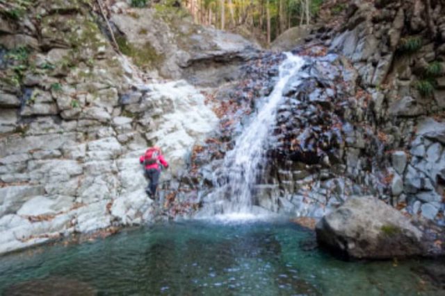 10Mの滝も気持ちよく登れる
