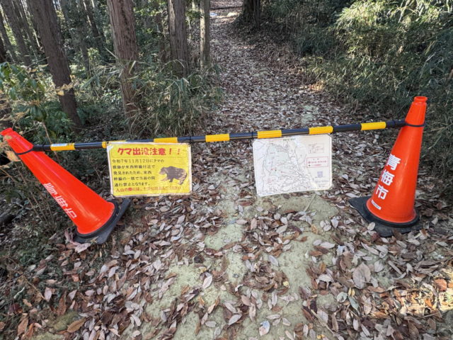 青梅丘陵ハイキングコースに入ると最近(11/7)に熊が出たようで立入禁止となっていて出鼻をくじかれる。結局人家付近まで下り、大回りを余儀なくされた。