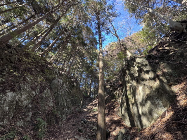途中通過した辛垣城址、自然の地形を利用した門かな?