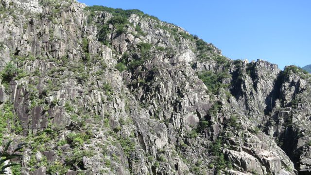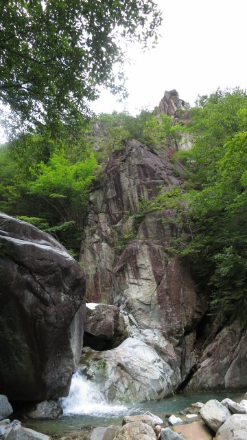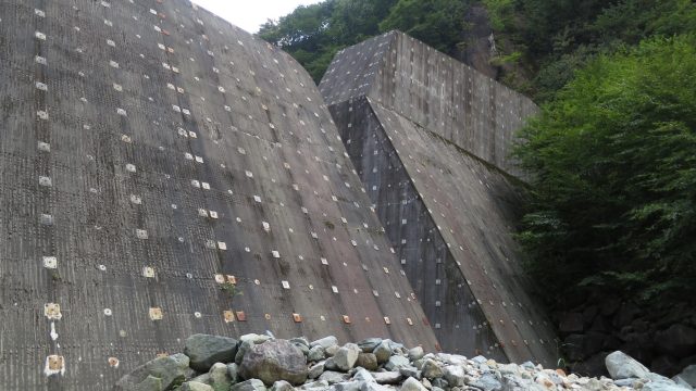 下山は石塔尾根を進むのと、反対側へ下り仁田元川を下降する2パターンあります。今回は暑かったので枝沢経由で仁田元川を下りました。これがなかなか流程が長く、駐車場に戻るまで4時間弱と思いのほか時間が掛かりました。下流に行くにつれ巨石や釜が目立つようになり、やがて巨大なスリットダムが現れます。長かった下降もようやく終点です。ここから林道を約40分歩きますが整備された砂利道の歩きやすさがありがたかったです。心配していた夕立もなく予定より早く15:30に下山出来たので一安心しました。*仁田元川は地形図では「川」、登山大系には「沢」と表記されています。今回は「川」を使用しました。