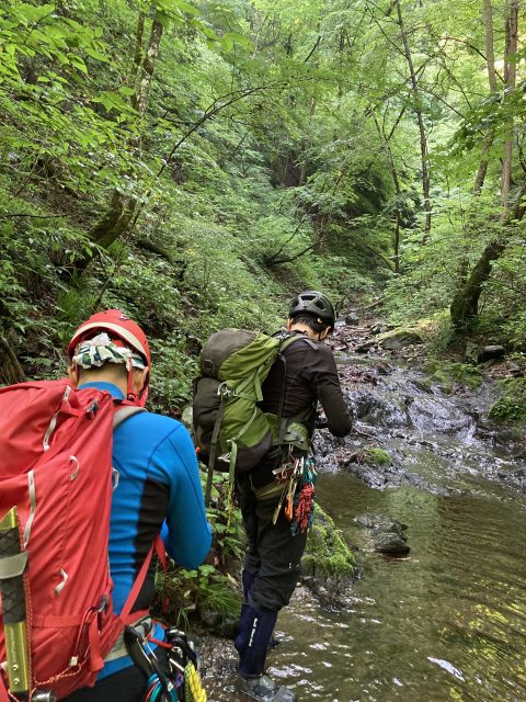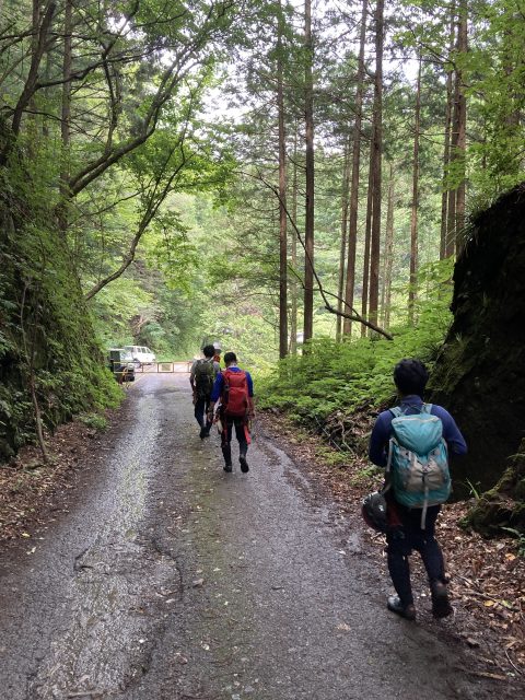 ありがたいことに今年度になってから入会の問い合わせが相次いだ。例会にお越しいただいた方を2組に分けて体験山行へ参加していただくことになった。第1班は会員も含め4人で檜原村の軍刀利沢、明日の第2班は6人で丹沢のマスキ嵐沢だ。今日、私が参加した軍刀利沢は初級の沢で遡行時間が短いながら登れる滝も多く新人のトレーニングや会の訓練などに使用されるという人気の沢だ。自宅から比較的近くにあるのに訪れたことが無かったので私もこの山行をとても楽しみにしていた。