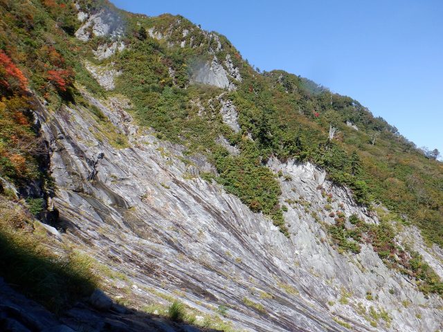 第1スラブの出口まてあと僅か…左上へトラバース